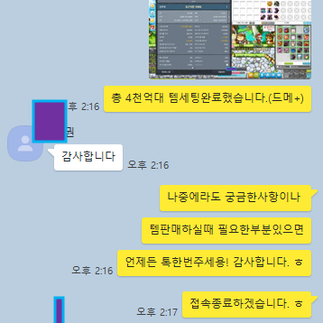 대리템세팅은 거래내역이 사이트 이전으로인해 고액세팅이 대부분지워졌으며